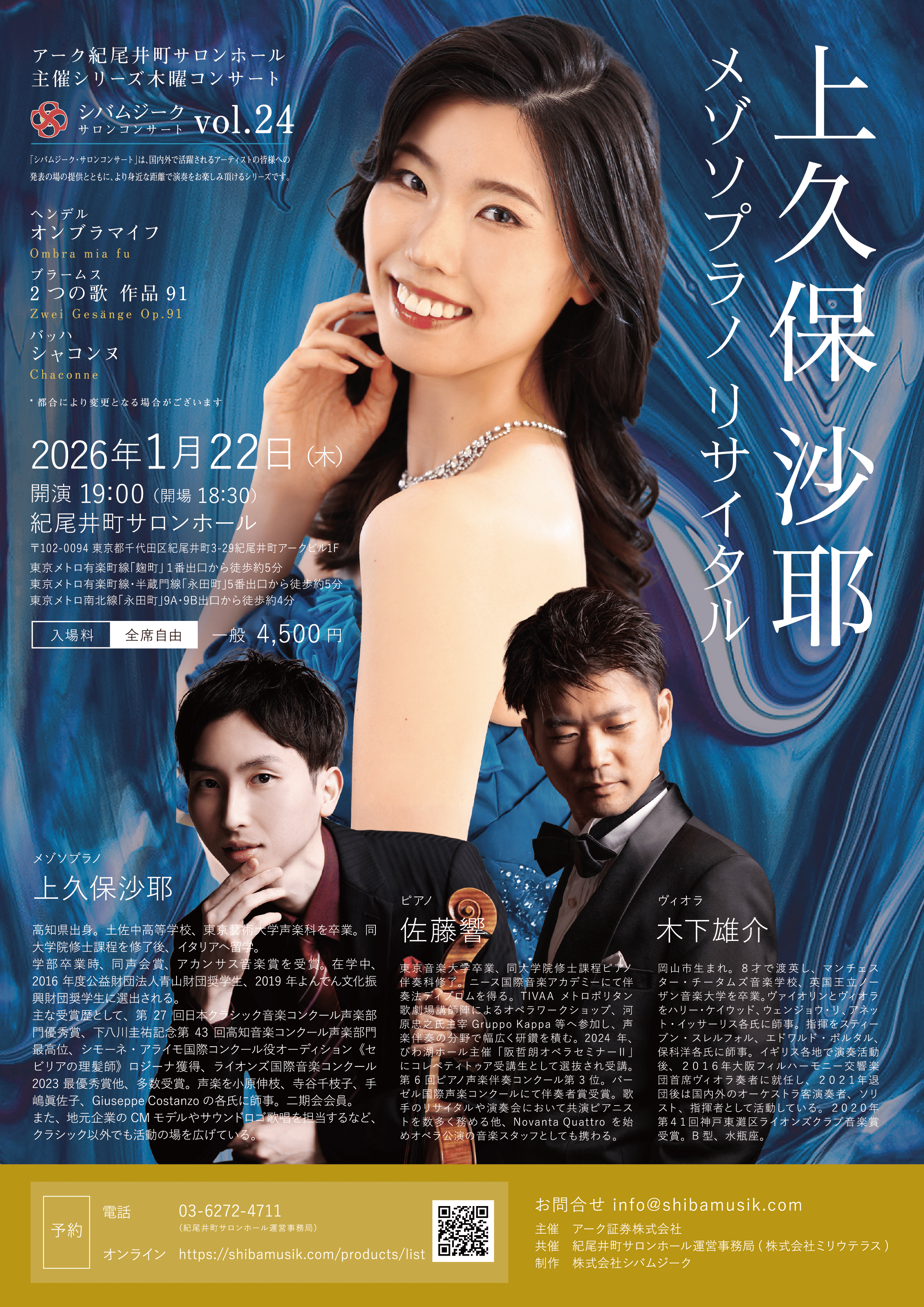 - 上久保沙耶(メゾソプラノ) 木下雄介(ヴィオラ) 佐藤響(ピアノ)