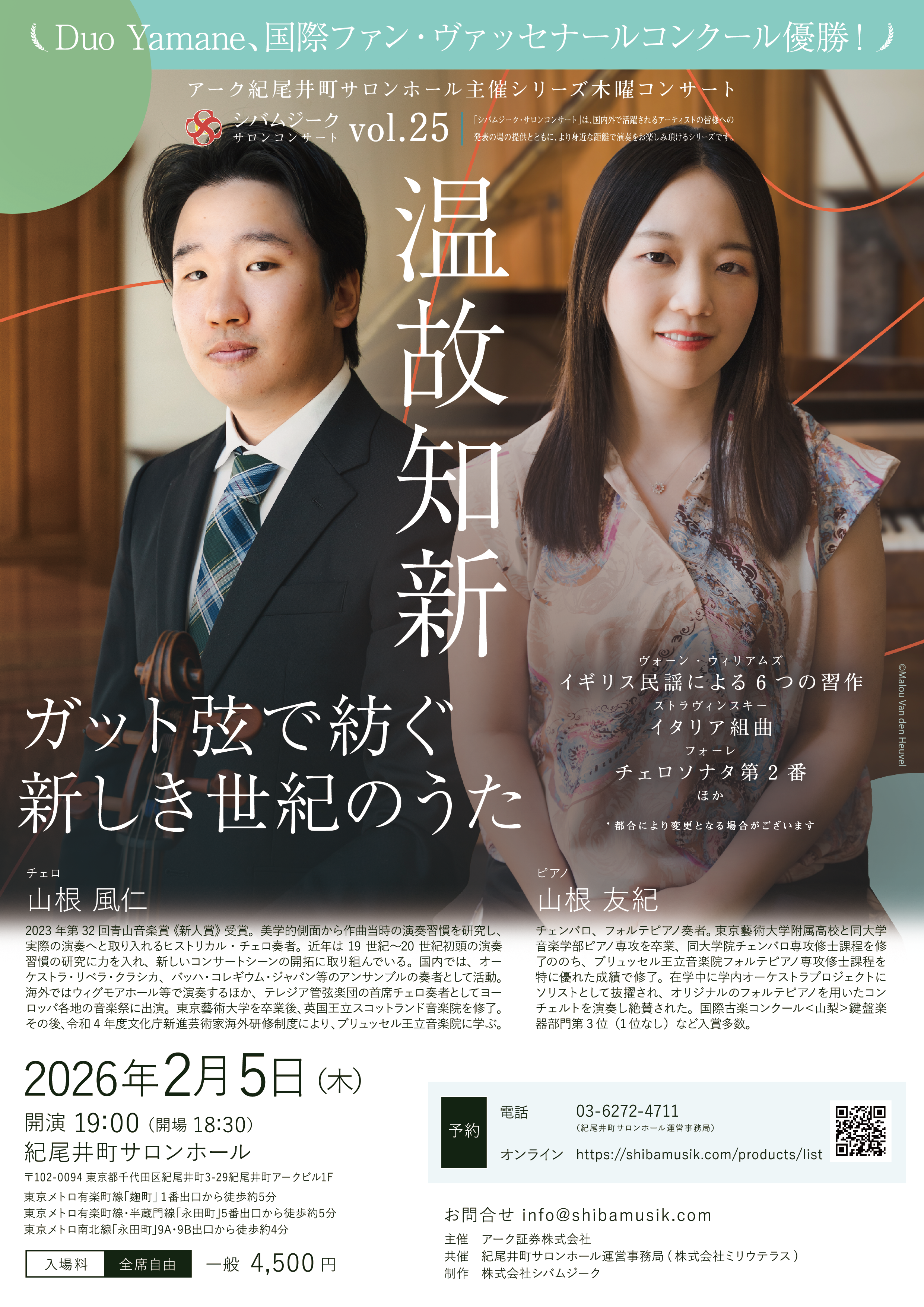 - 山根 風仁(チェロ) 山根 友紀(ピアノ)